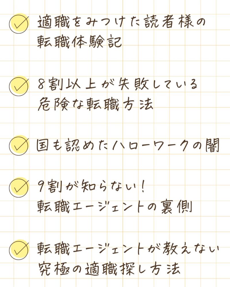 実際に、この電子書籍を読んでくれた読者様からは、「この内容を知るだけでも、だいぶ適職に近づけた気がします✨」と、大変好評を頂いています…!