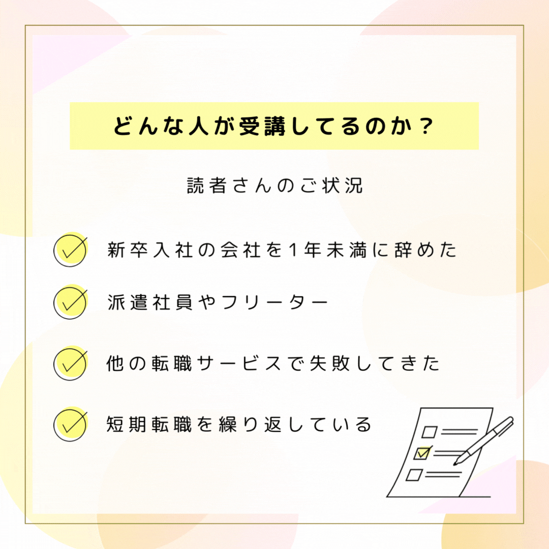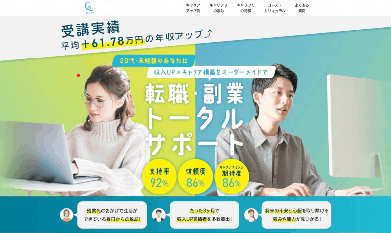 読み終わるころには受講の流れも、料金もイメージできるので、ご自身が「キャリフリを使うべきなのか?使えそうなのか?」がより判断しやすくなるはずです。
