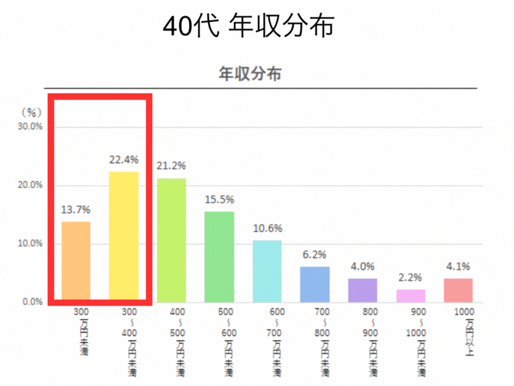 どの年代を見ても、年収300〜400万円止まりの人たちばかりなんです。